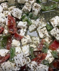 Een gerijpte schapenkaas ingelegd met rozijnen die liggen in de wijn met cacao.